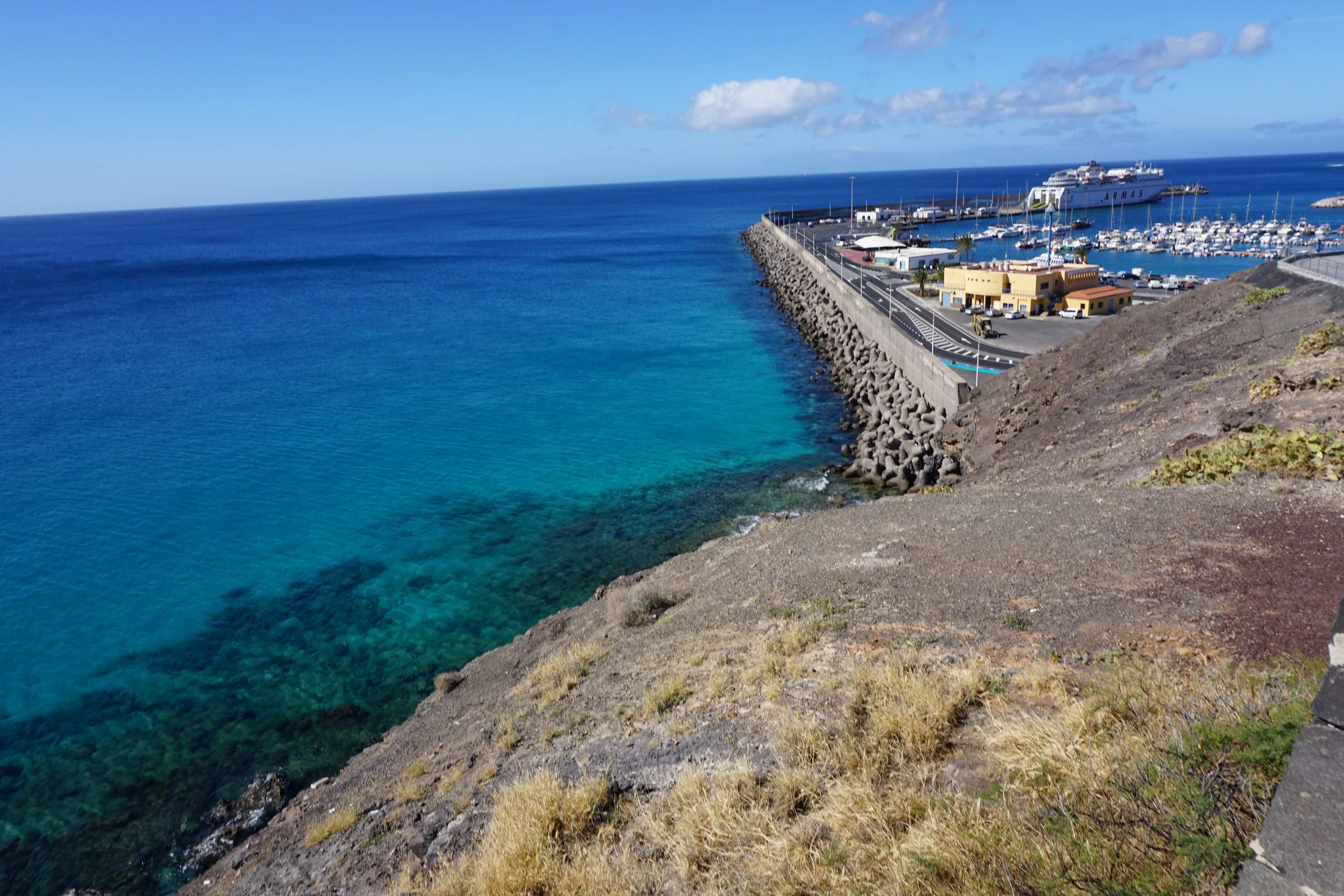 Blick auf den Hafen von Jandía, an dem auch die Fähre von/nach Gran Canaria Halt macht.